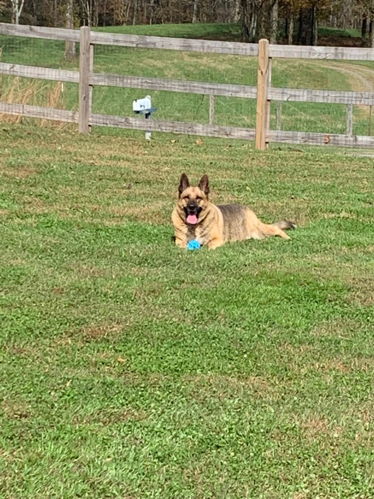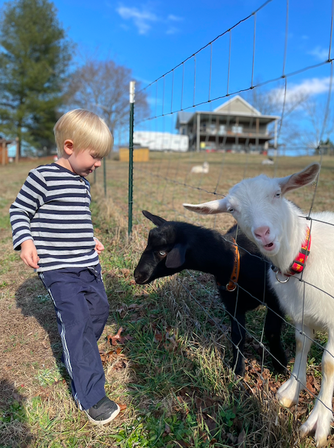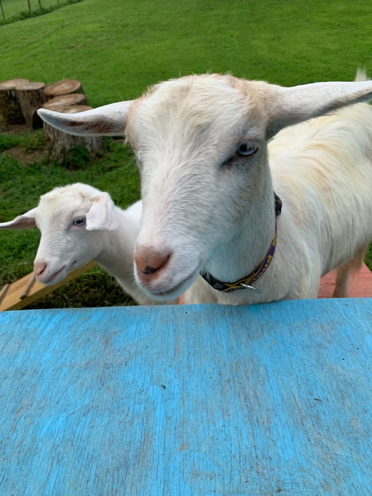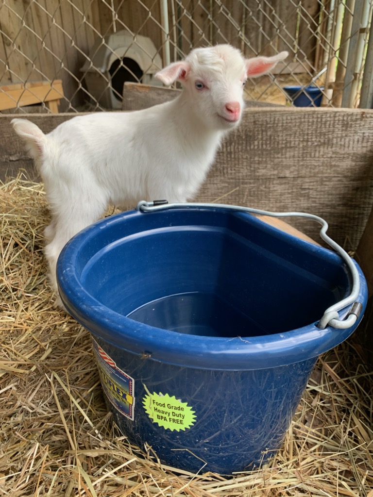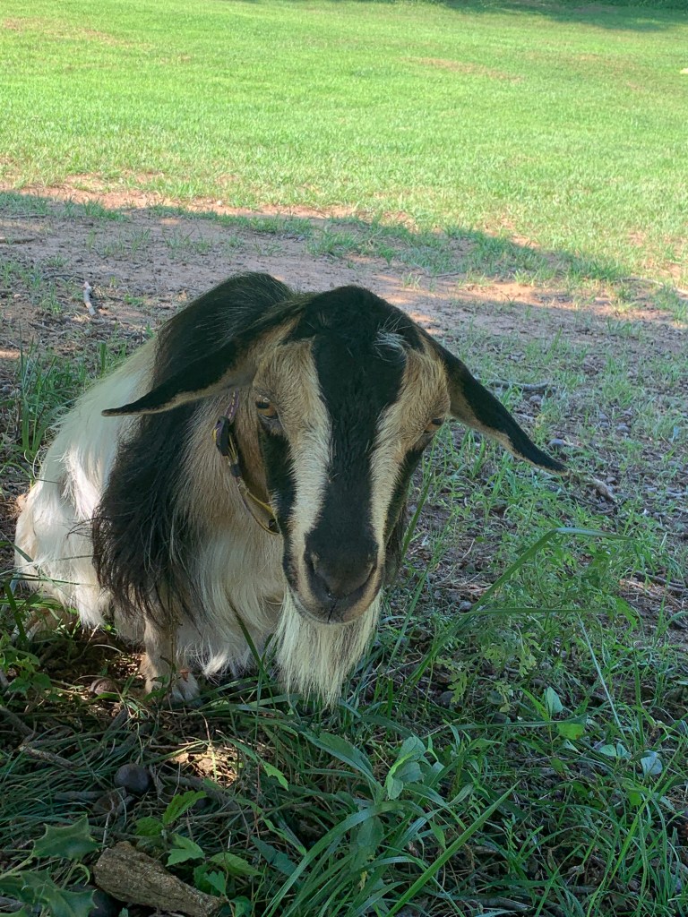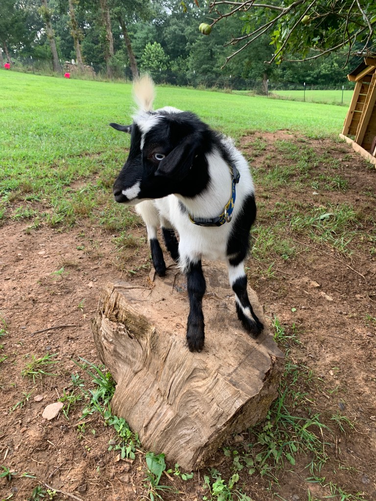 Nina is the matriarch of our herd. She is an 11 year- old Myotonic goat that was adopted from Infinity Acres Ranch in Virginia.
