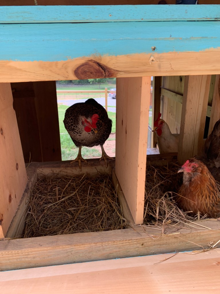 Wagging Tails Farm is the home to a small flock of egg producing chickens. The girls are protected by our rooster, Stephen Hawking.